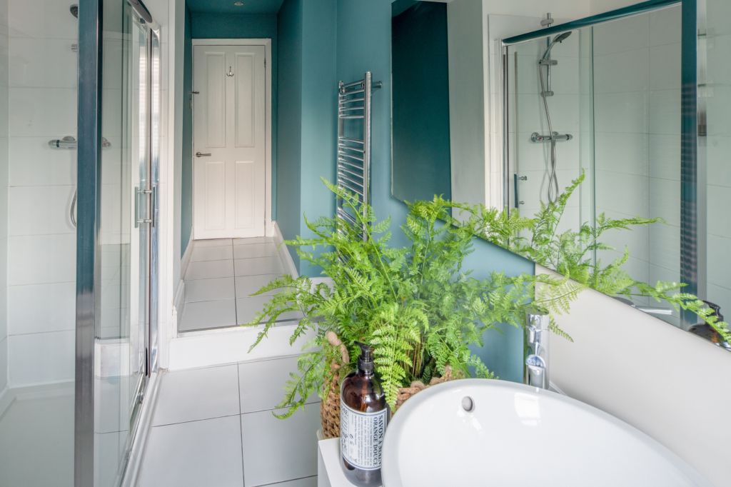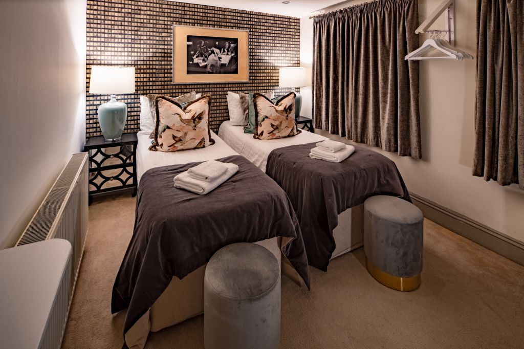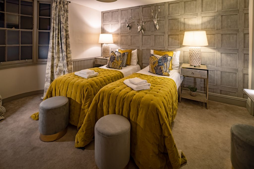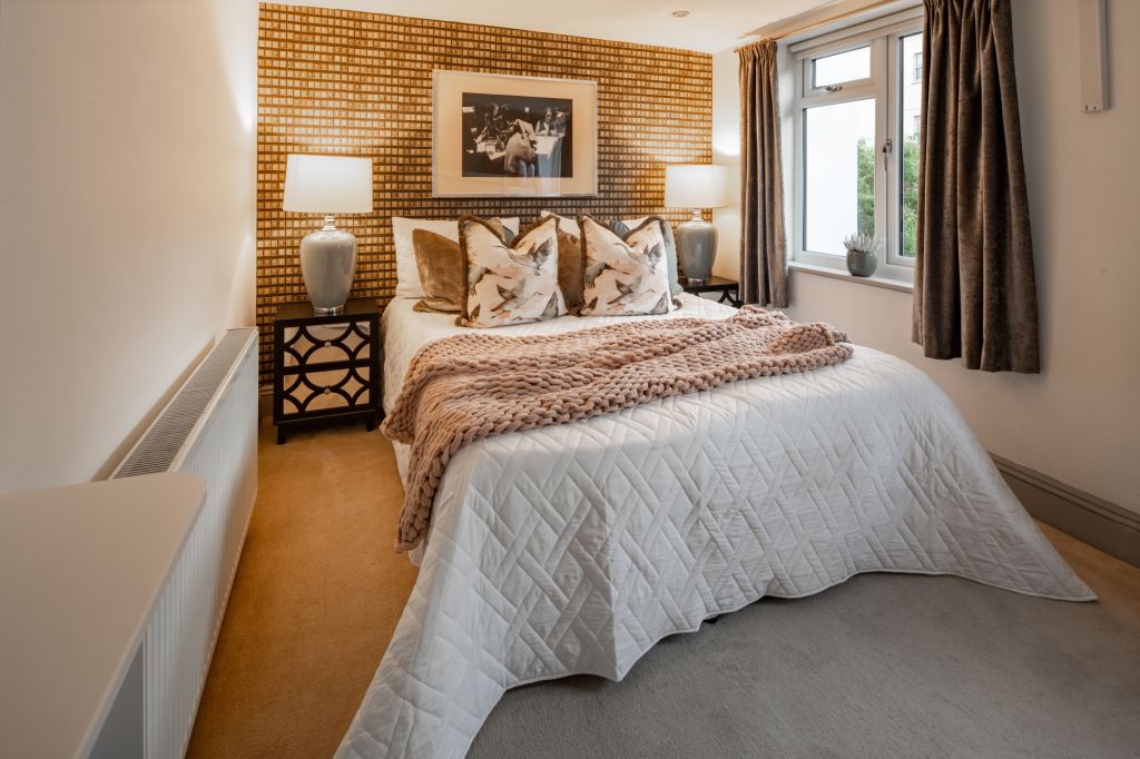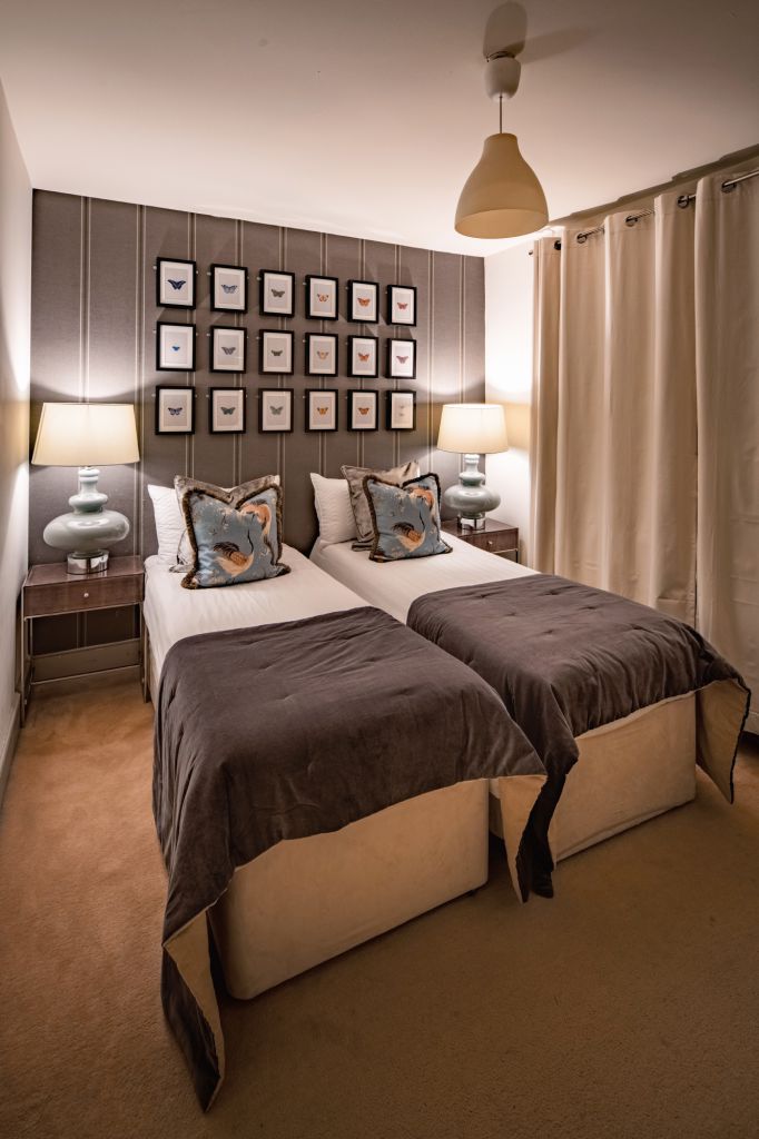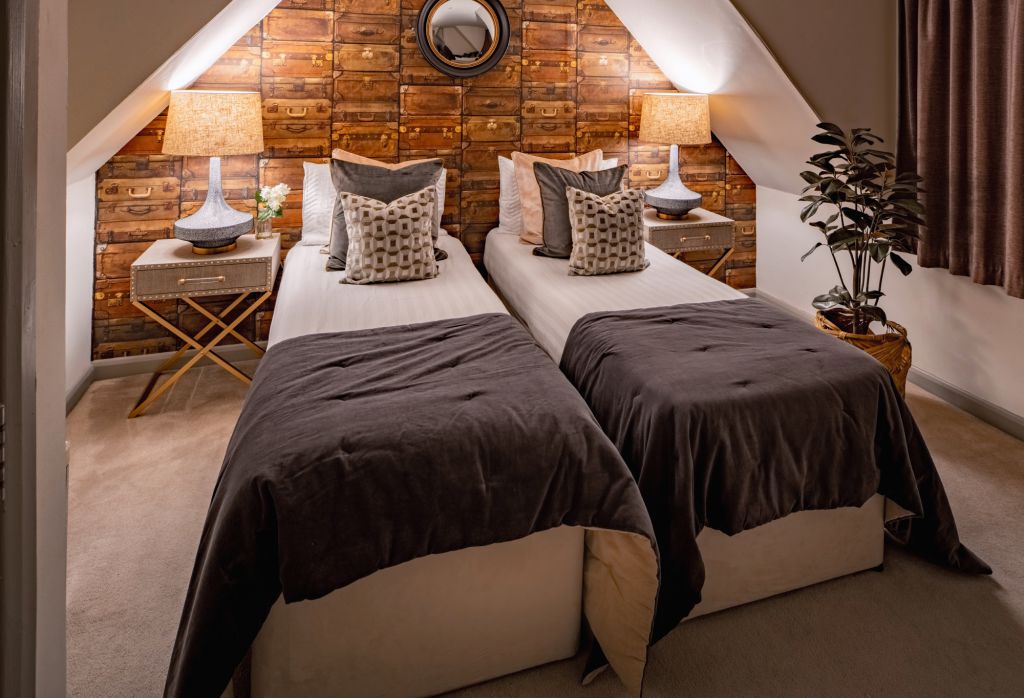 On the first floor you’ll find two further bedrooms – each designed to have a distinctive look and feel. Bedroom Two oozes opulence and has 2 sets of bunkbeds – both with doubles on the bottom and singles on top and features a vanity mirror with seating for 3 guests. There’s also a luxurious ensuite bathroom which has a sleek finish and walk-in shower.
